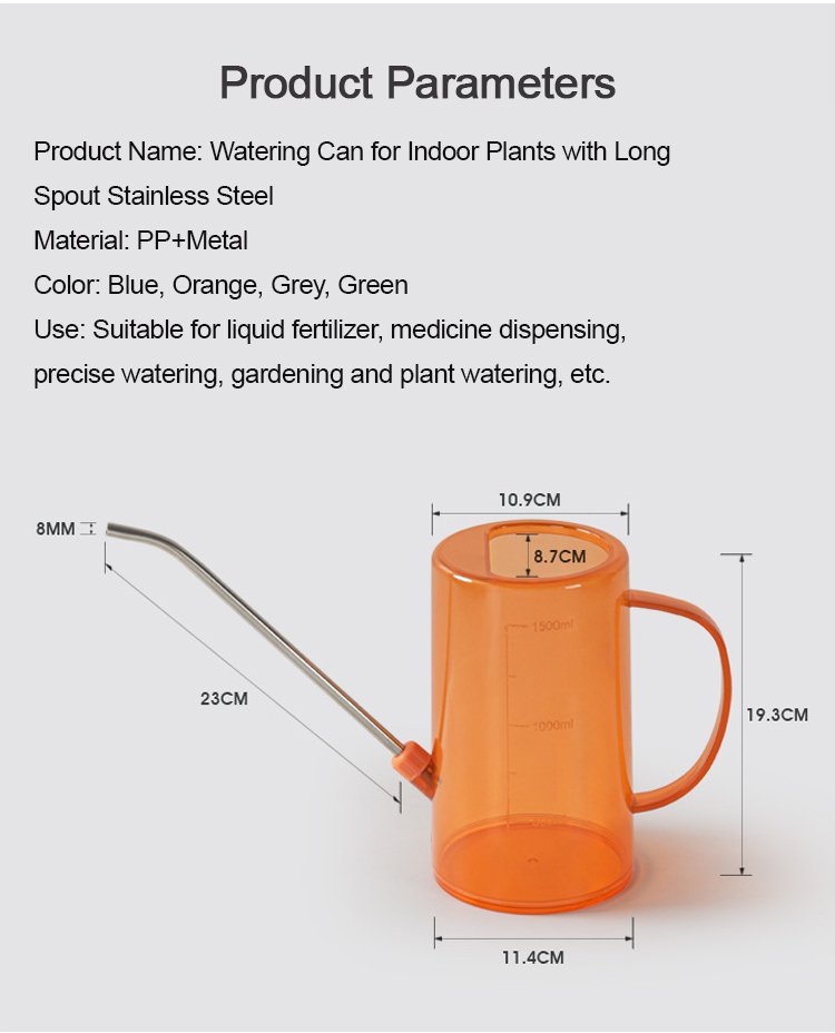 ● Crafted from premium stainless steel, this watering can is rust-resistant and durable, ensuring long-lasting use for all your home gardening needs.