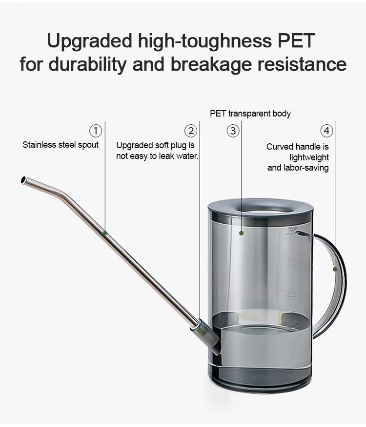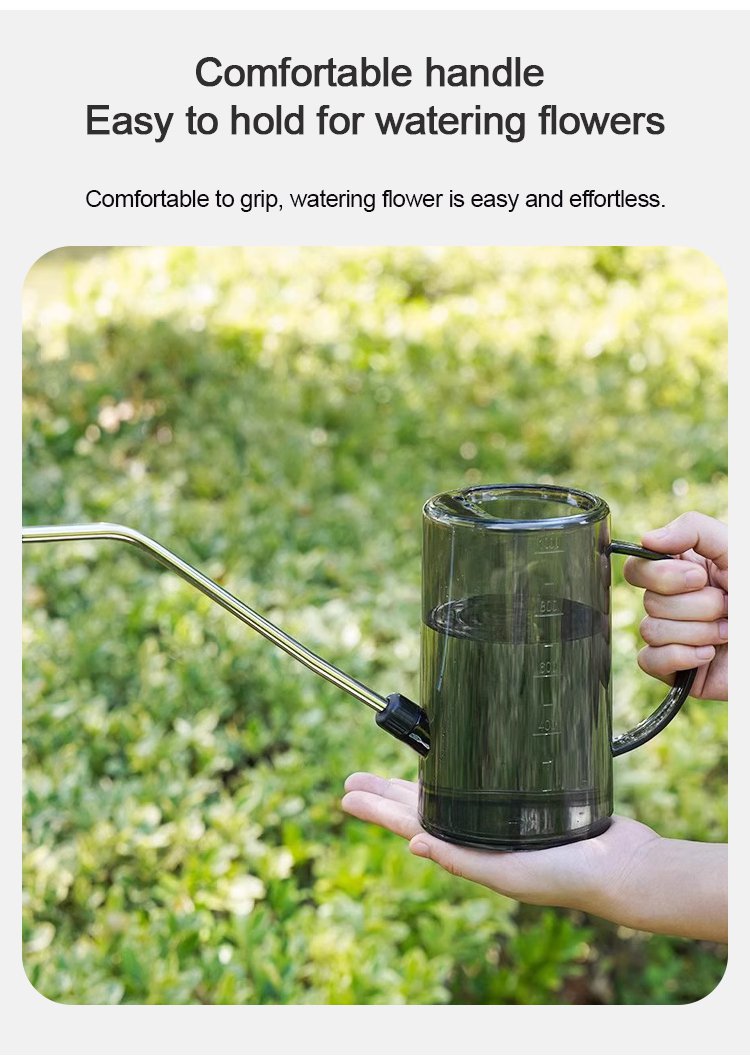 ● The extra-long, narrow spout provides precise water flow, making it easy to reach the base of plants without spilling or splashing.